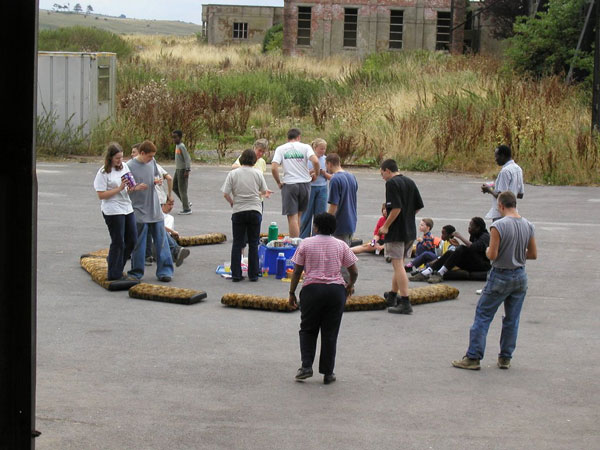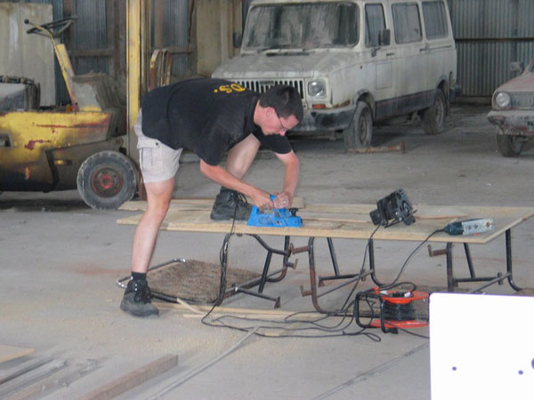 Some of the team refitting the bus, lots of us are still friends 11 years on.