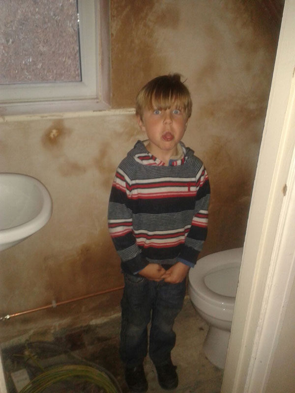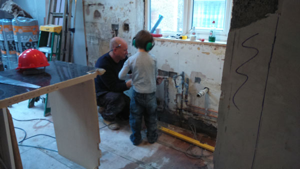 Work has continued a pace. Doors should be here (should have already been here...) next week. Walls are down, steels are in. I'm sorting bits around the house, Rosie has taken Bethea out and John is helping me - and Andy (the sparky). This may well be my favorite picture of the whole build.