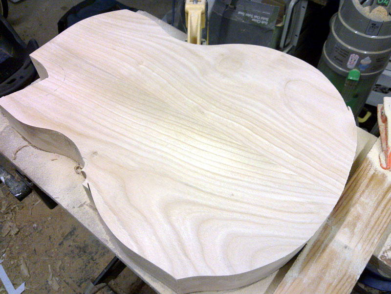 Guitar now rough cut and figure on the back is now visible, but that's all i've got time fore now, more in a couple of weeks. I need to make a braket to connect my daughter's tag-along to my bike better than the current one which is at the wrong angle, so out comes the welding and metal working kit.