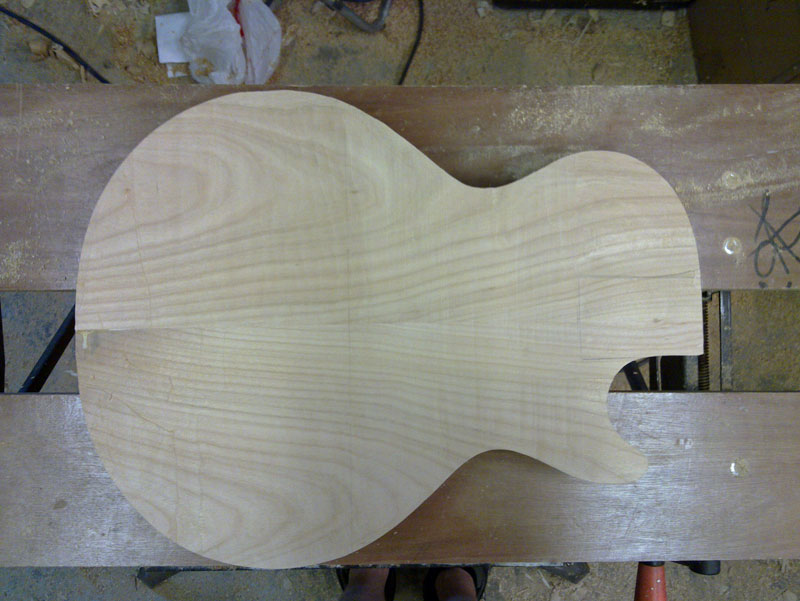 Get the chance to have a few quality hours in the garage. Body is now routed out and the top is flatted using my router table. The grain in the top now visible, the dark areas near the join should disappear when i take more material off for the curve - hopefully!