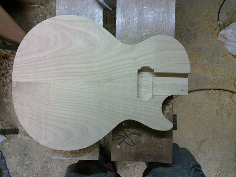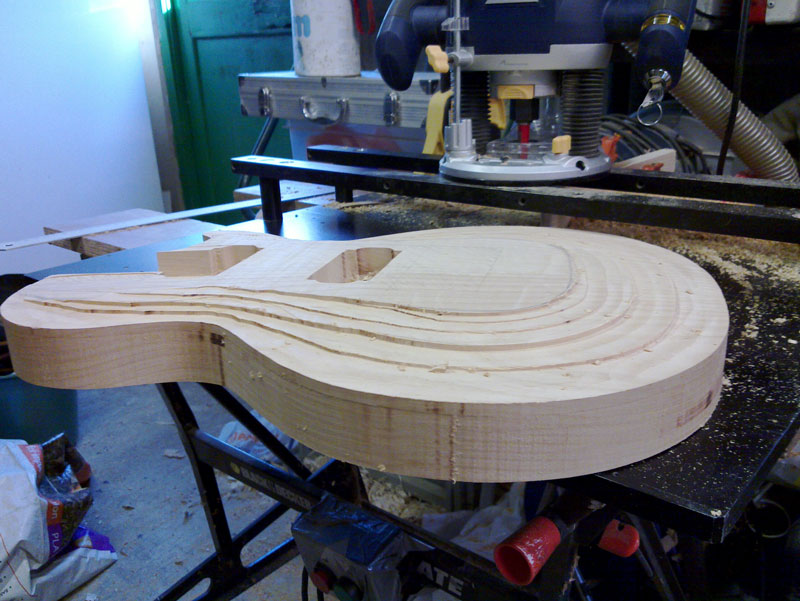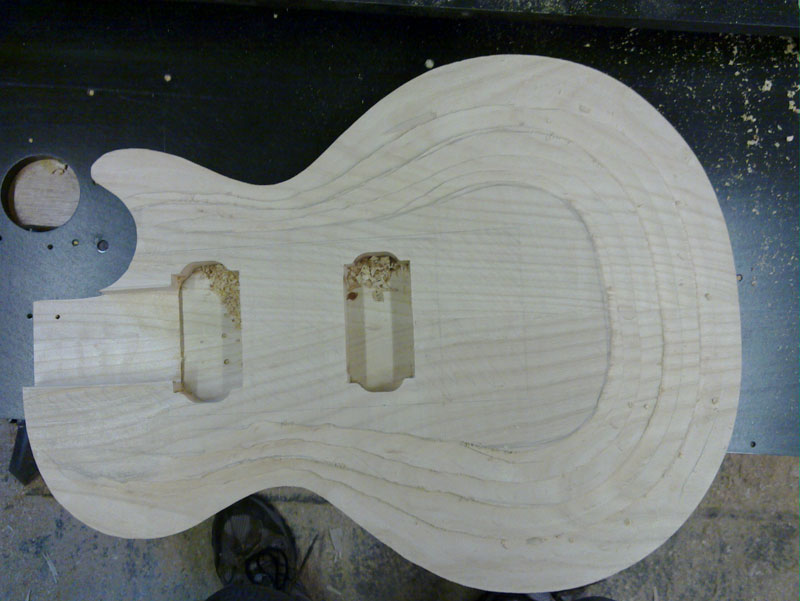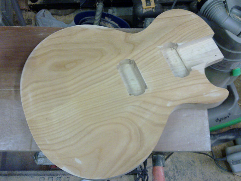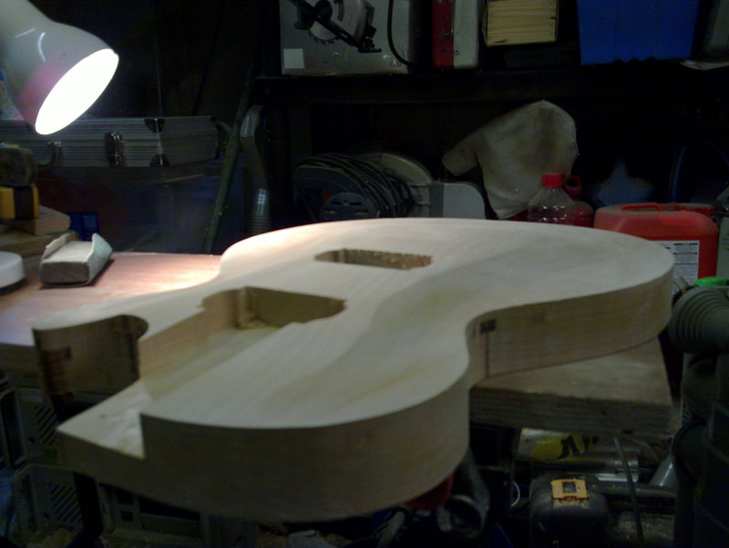 Two updates today both told in pictures. Firstly the rough carve done free-hand underneath my router i sketched on the body where i wanted what depth and then went for it. Doesn't look too bad.